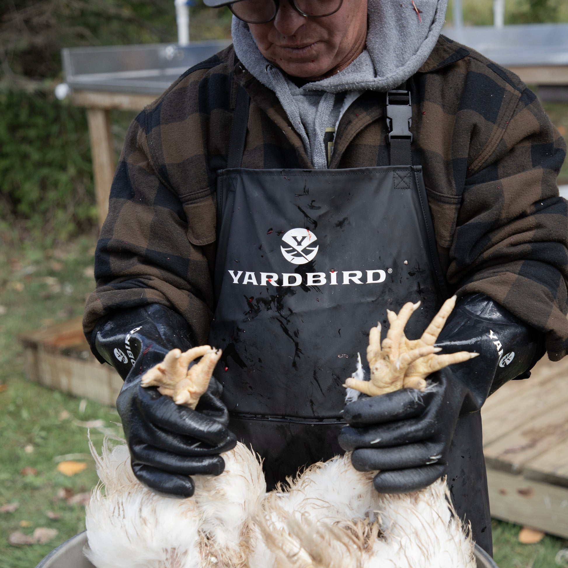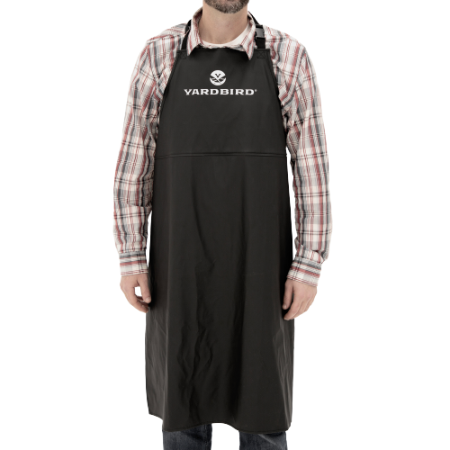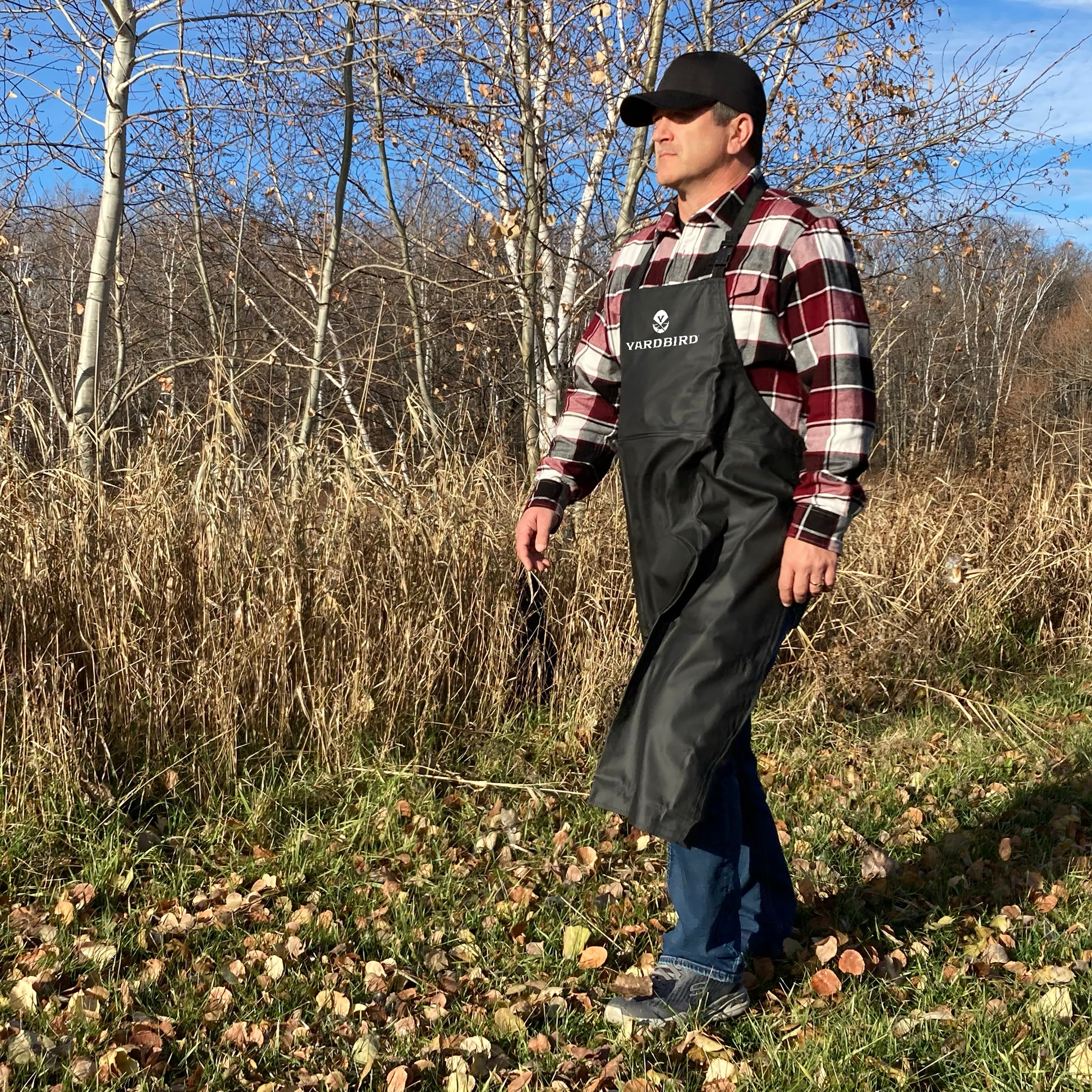 The Yardbird Sleeveless Butchering Apron makes the butchering process cleaner than ever before. Made with a durable vinyl coated material, the apron is 100% waterproof even at the seams, and allows the apron to be cleaned quickly and easily with just soap and water. It features two buckle style adjustable belts for a custom fit. The adjustable waist belt ensures the perfect fit without having to tie behind your back and the adjustable neck belt strap fits comfortably without digging into your neck, allowing you to make slight adjustments to the length of the apron. The Yardbird Sleeveless Butchering Apron is knee length or longer on most adults. Spot clean/hand wash cold, hang to dry.